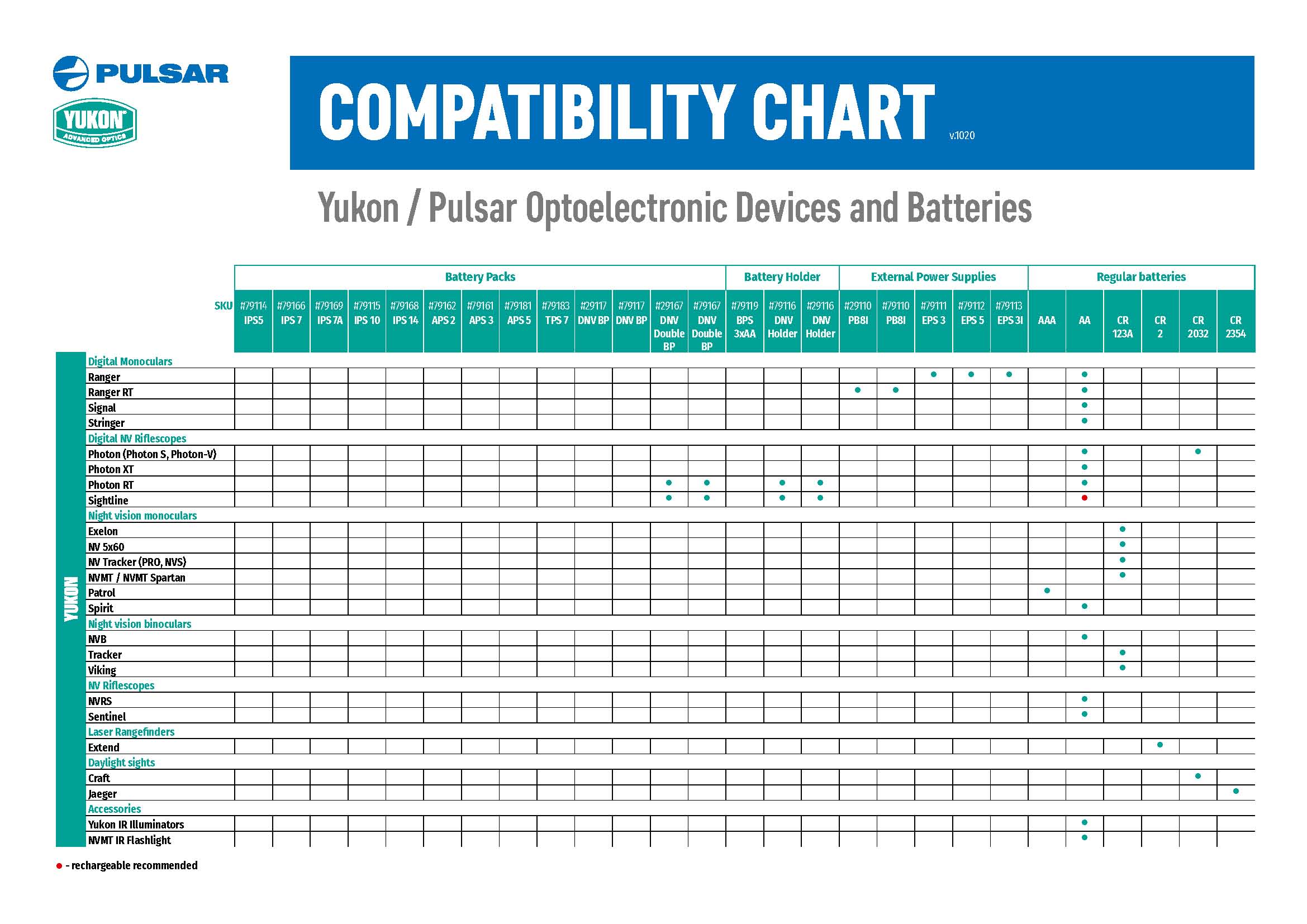 Pulsar/Yukon Compatibility Chart Page 1